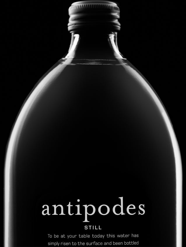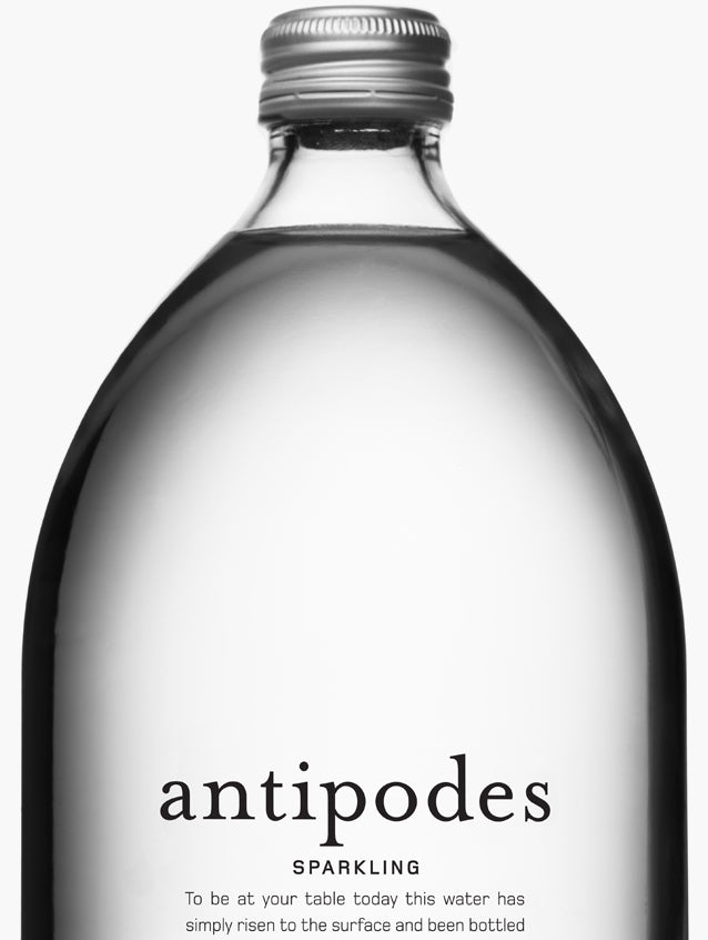 Fine water is a central element in the enjoyment of wine and cuisine. Unaltered from its deep source to the bottle on the table, the low minerality and purity of Antipodes is its hallmark.
